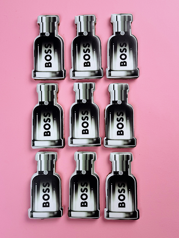 Zainspirowane mroczną, skórzaną butelką, silną typografią, stworzyłyśmy ciastka z lukrem na ogólnopolską premierę perfum w showroom’ie marki oraz jako niespodzianka dla influencerów. Elegancja, odwaga i cukier-puder. Od teraz to swoi za marką Hugo Boss, dzięki nam! 😊