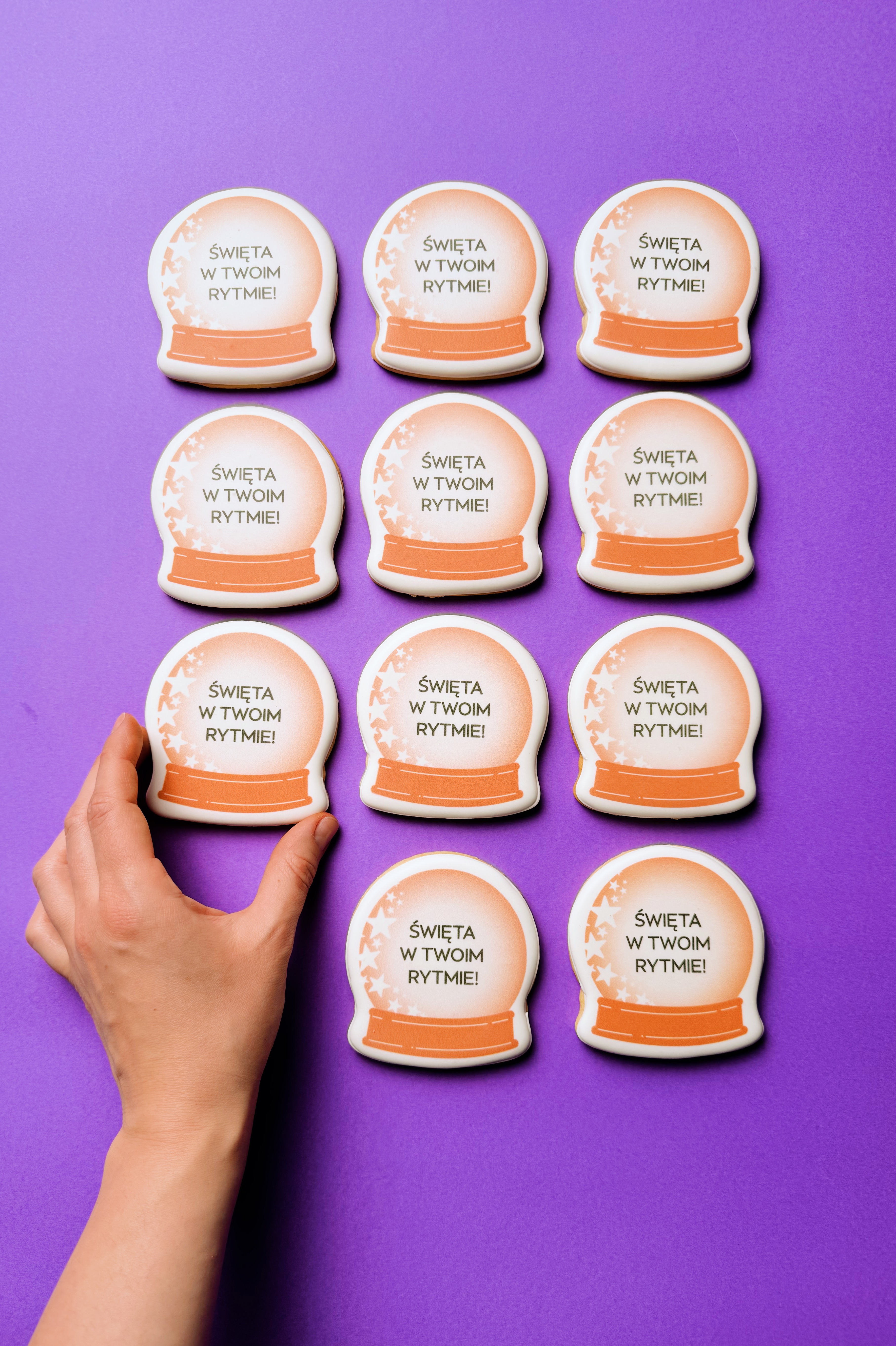 Do boxa PR, oprócz kolagenu REME, trafiły nasze ręcznie dekorowane ciastka inspirowane najnowszym smakiem produktu – mango-marakuja. Odwzorowałam efekt ombre z etykiety kluczowego produktu, podkreśliłam owocowe nuty suplementu poprzez cytrusowy zest w cieście, nawiązałam do identyfikacyjni wizualnej REME, nie zapominając o świątecznym kontekście wysyłki kreatywnej. Całość uzupełniły tailor-made opakowania zaprojektowane pod kampanię influencer marketingową, dzięki czemu box był gotowym, instagramowym contentem dla twórców. Efekt? Ogrom publikacji w social mediach oraz kreatywne unboxingi m.in. u Joanny Przetakiewicz i Izabeli Janachowskiej. Ta realizacja pokazuje, że artystyczne ciastka z logo marki mogą być pełnoprawnym elementem strategii marketingowej – szczególnie w branży beauty, zdrowego odżywiania i produktów premium.